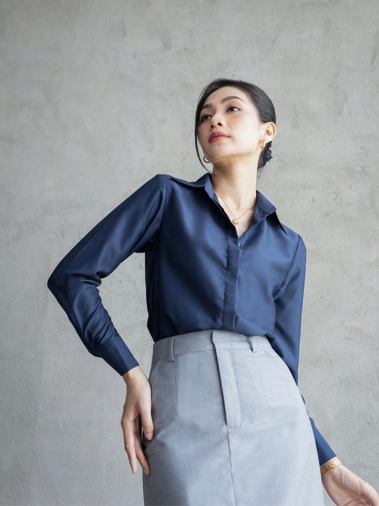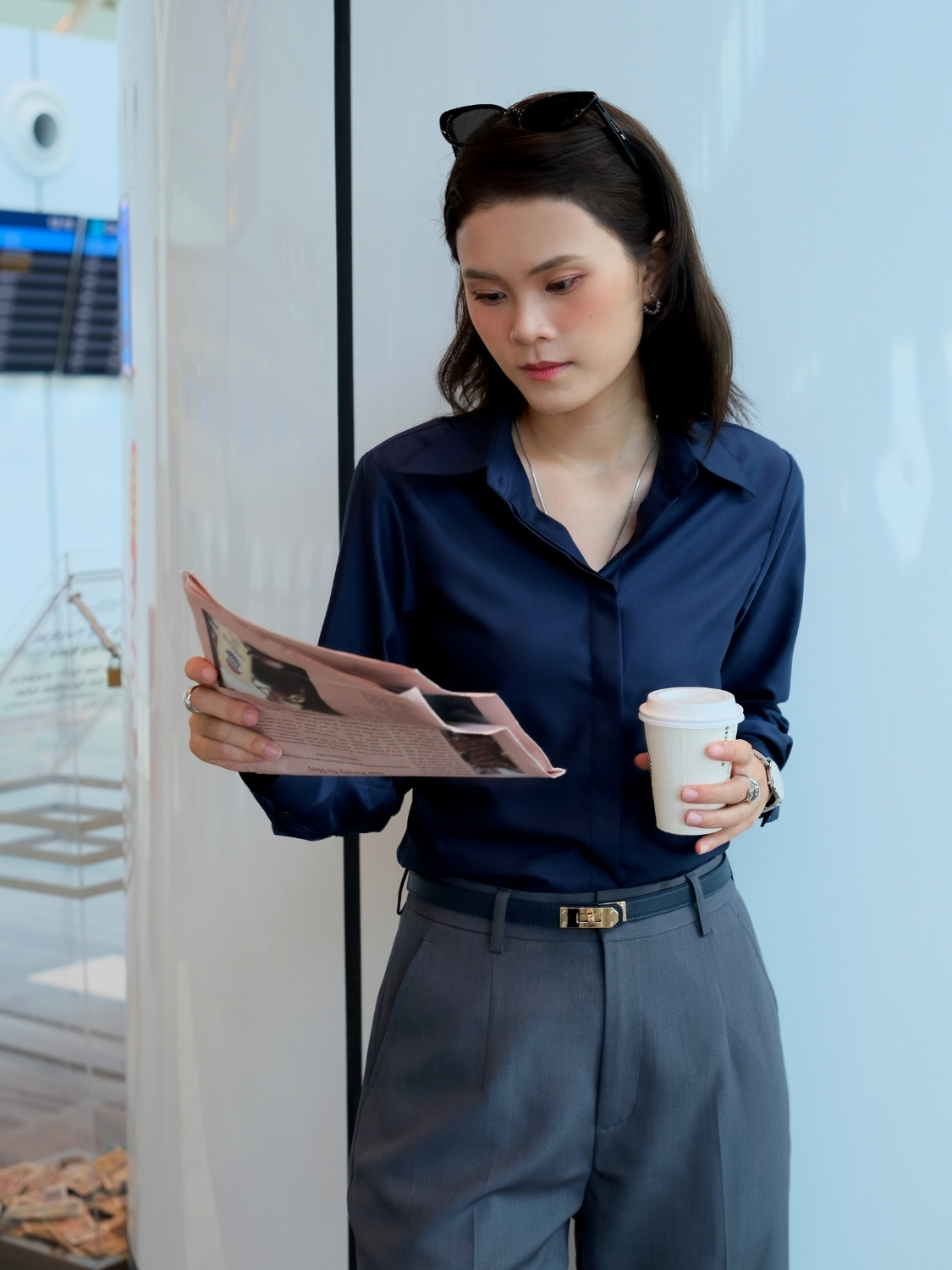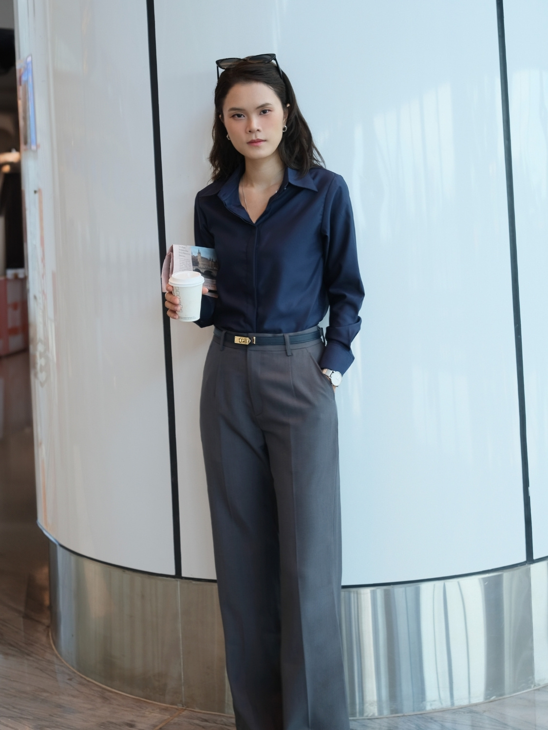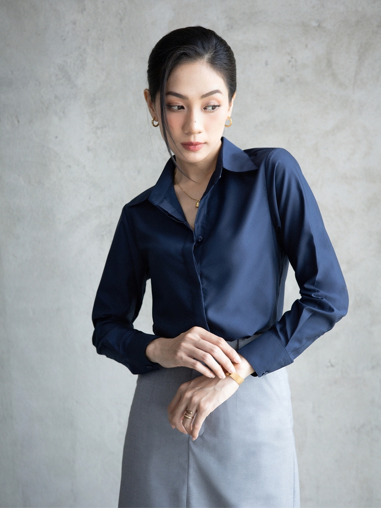 Áo sơ mi Basic Navy được thiết kế với phom suông vừa vặn, mang lại sự thoải mái nhưng vẫn giữ nét chỉn chu. Chất vải mang đến bề mặt mềm mịn, thấm hút tốt và ánh lụa nhẹ nhàng tạo nên vẻ ngoài sang trọng.
