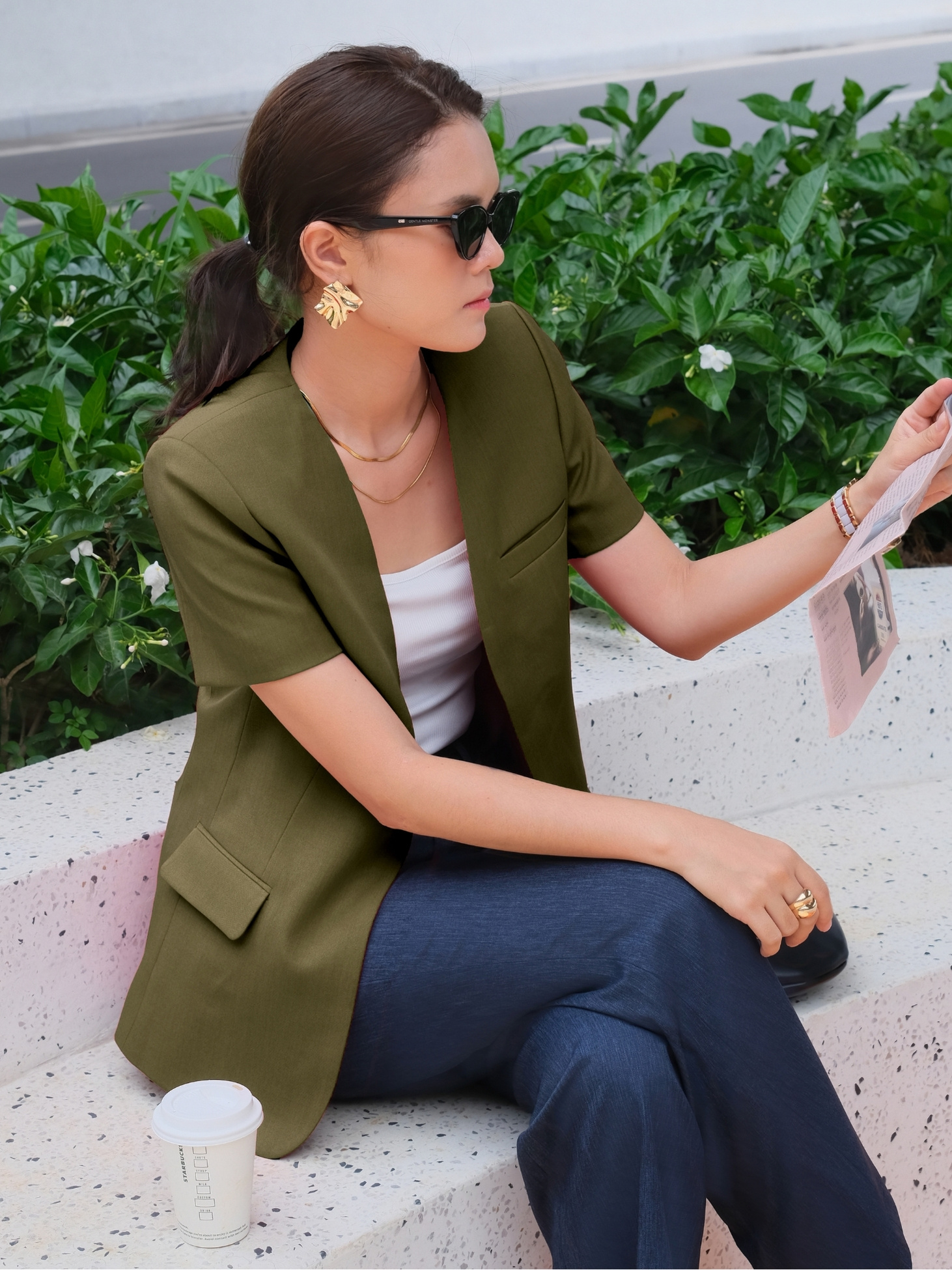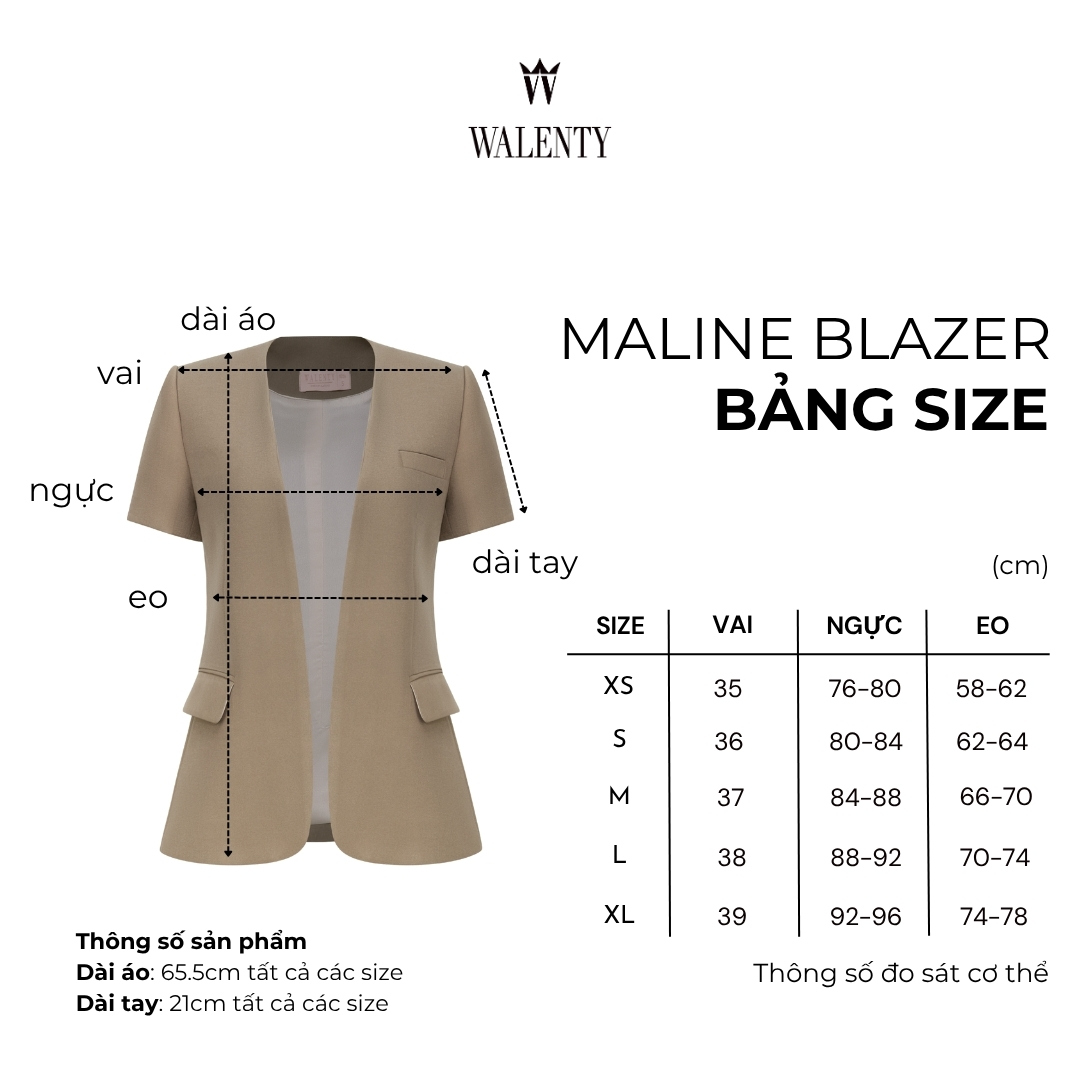 Với phom dáng suông rộng, không cổ, không khuy, Maline Blazer đúng nghĩa là “một chiếc áo khoác ngoài” – vừa đủ chỉn chu cho công sở, vừa nhẹ nhàng để diện thường ngày. Chất liệu cotton xước mềm mại, thoáng mát với hiệu ứng vân xước sang trọng, ít nhăn, cùng lớp lót mát lạnh giúp bạn tự tin và dễ chịu suốt cả ngày.