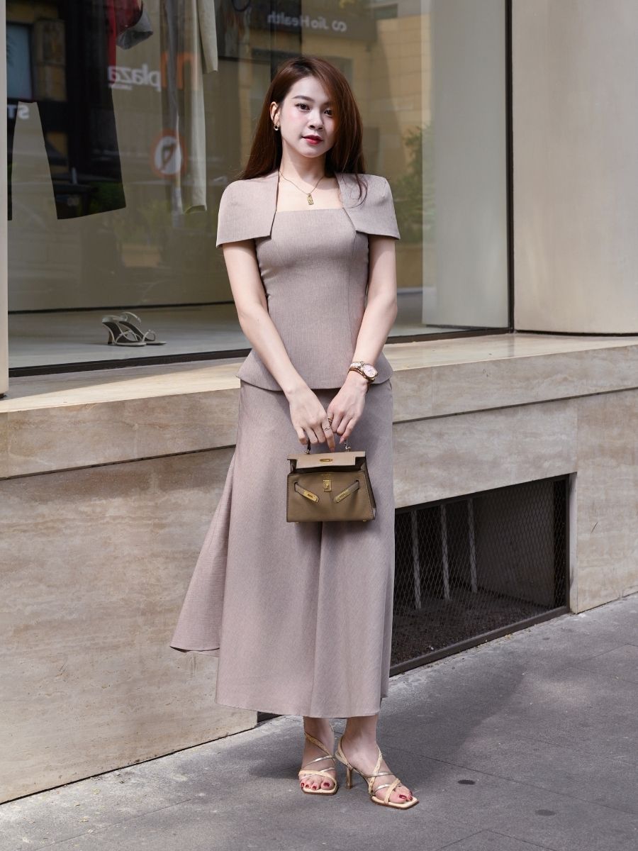 Chân váy sở hữu phom dáng gọn gàng với đường cắt tinh tế, tạo chuyển động nhẹ khi di chuyển và giúp tổng thể trông mềm mại, nữ tính. Thiết kế tôn dáng vừa phải, dễ phối cùng nhiều kiểu áo khác nhau, phù hợp cho cả mặc hằng ngày lẫn những dịp cần sự chỉn chu.