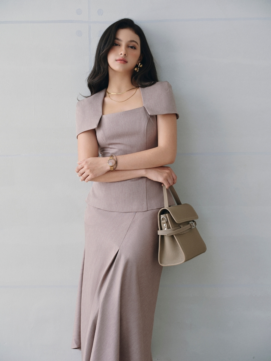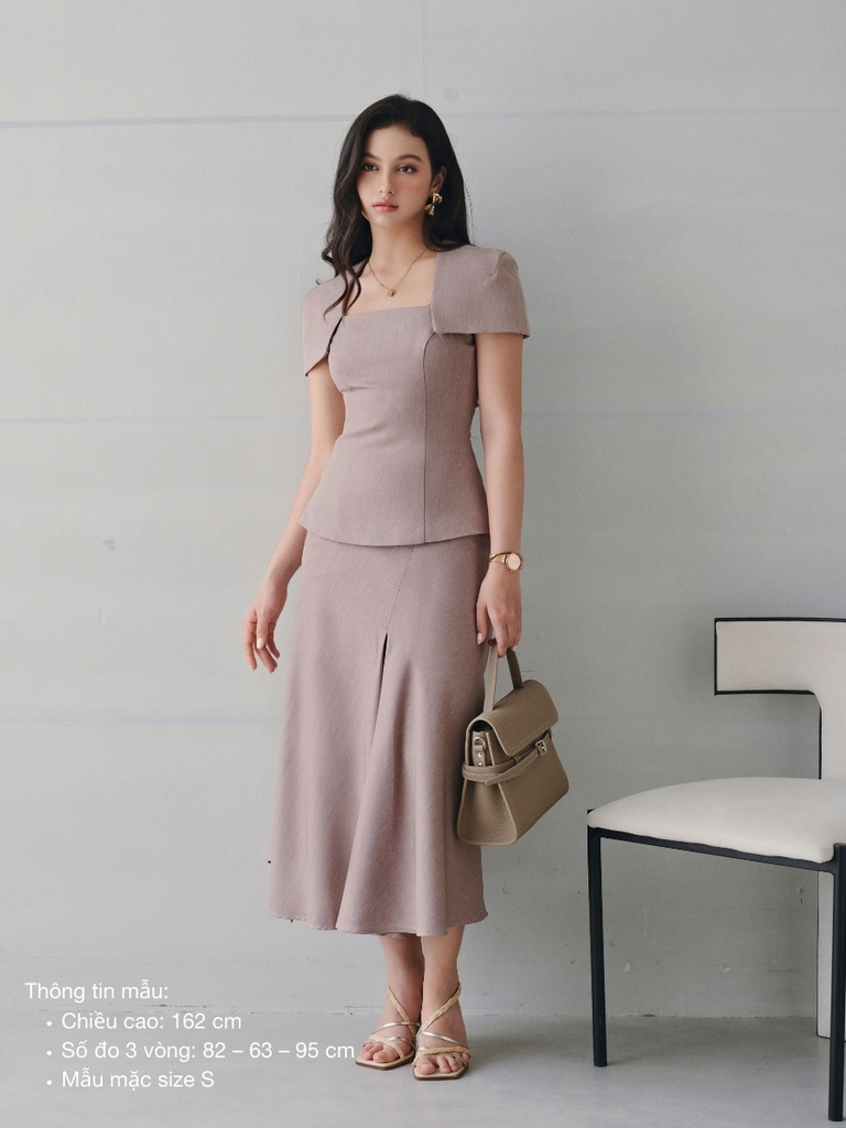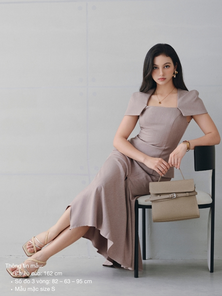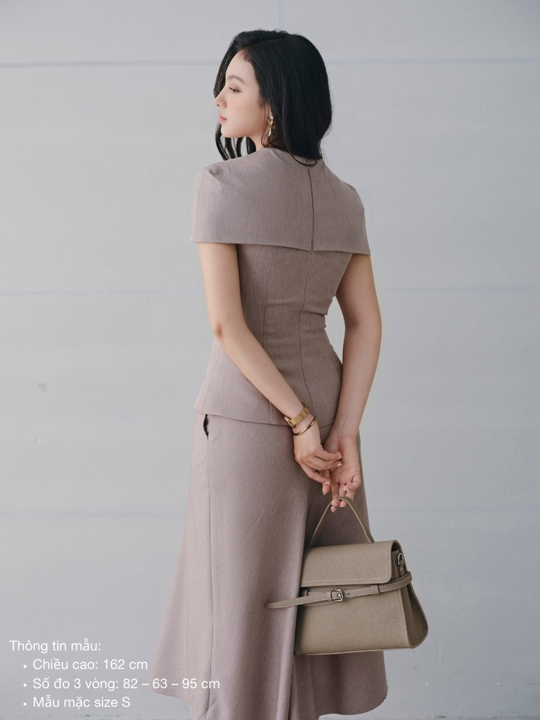 Thiết kế mang tinh thần nữ tính hiện đại với phom dáng gọn gàng, tôn dáng một cách tự nhiên. Phần thân trên được xử lý tinh tế, tạo cảm giác cân đối và mềm mại khi mặc, trong khi đường cắt ở chân váy giúp tổng thể thêm chuyển động, không gò bó. Sản phẩm phù hợp cho nhiều dịp sử dụng, từ dạo phố, gặp gỡ đến những sự kiện cần vẻ ngoài chỉn chu.