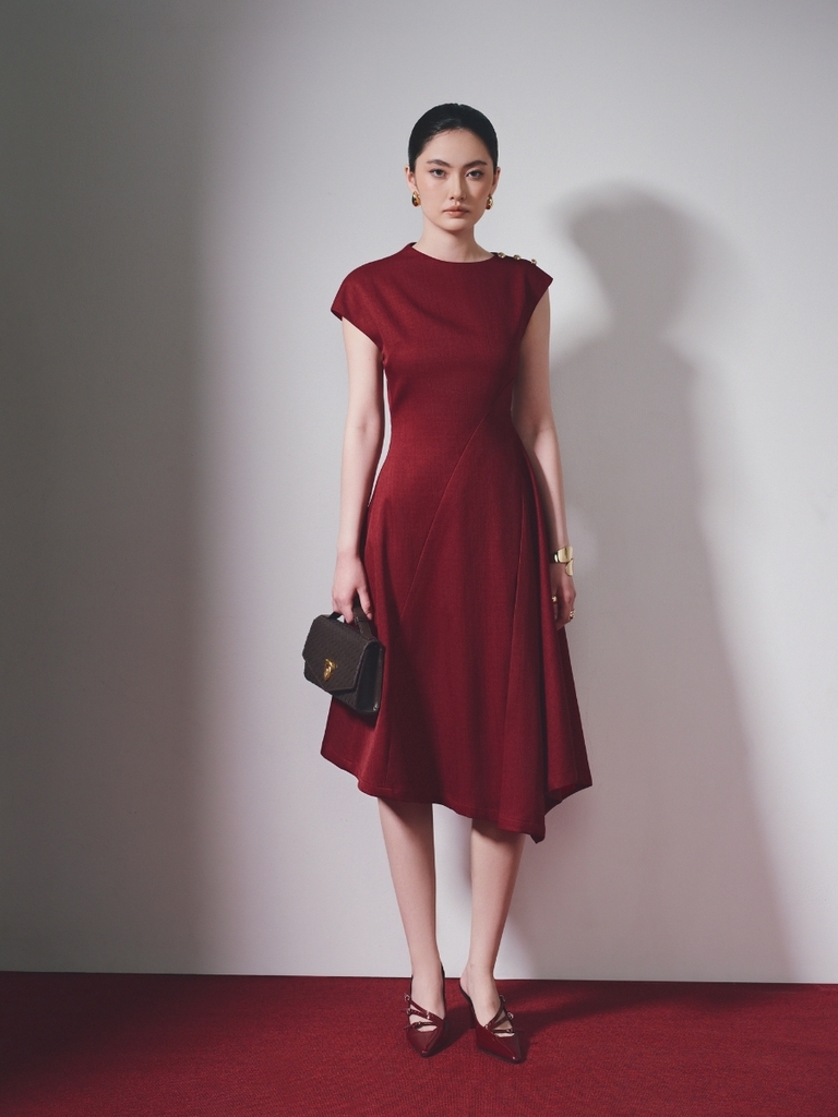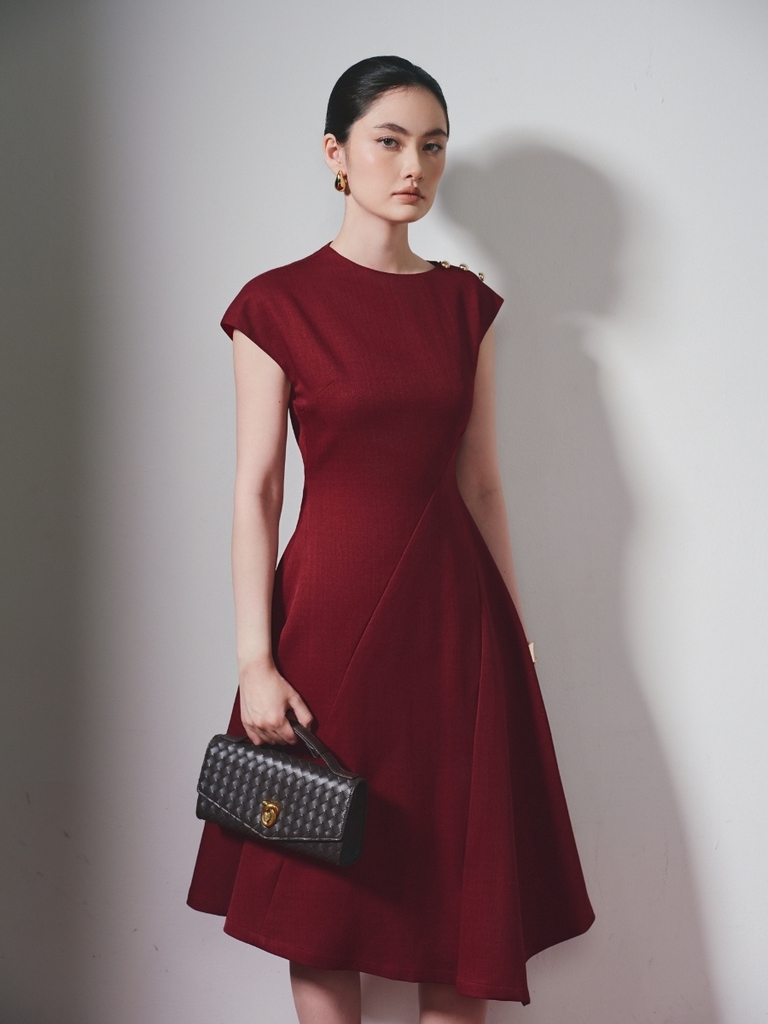 CHOERRY DRESS  Thiết kế đầm xòe với vạt xéo tạo độ rủ tự nhiên, mang đến chuyển động mềm mại theo từng bước chân, đồng thời tôn dáng một cách tinh tế và nữ tính. Phom dáng được xử lý khéo...