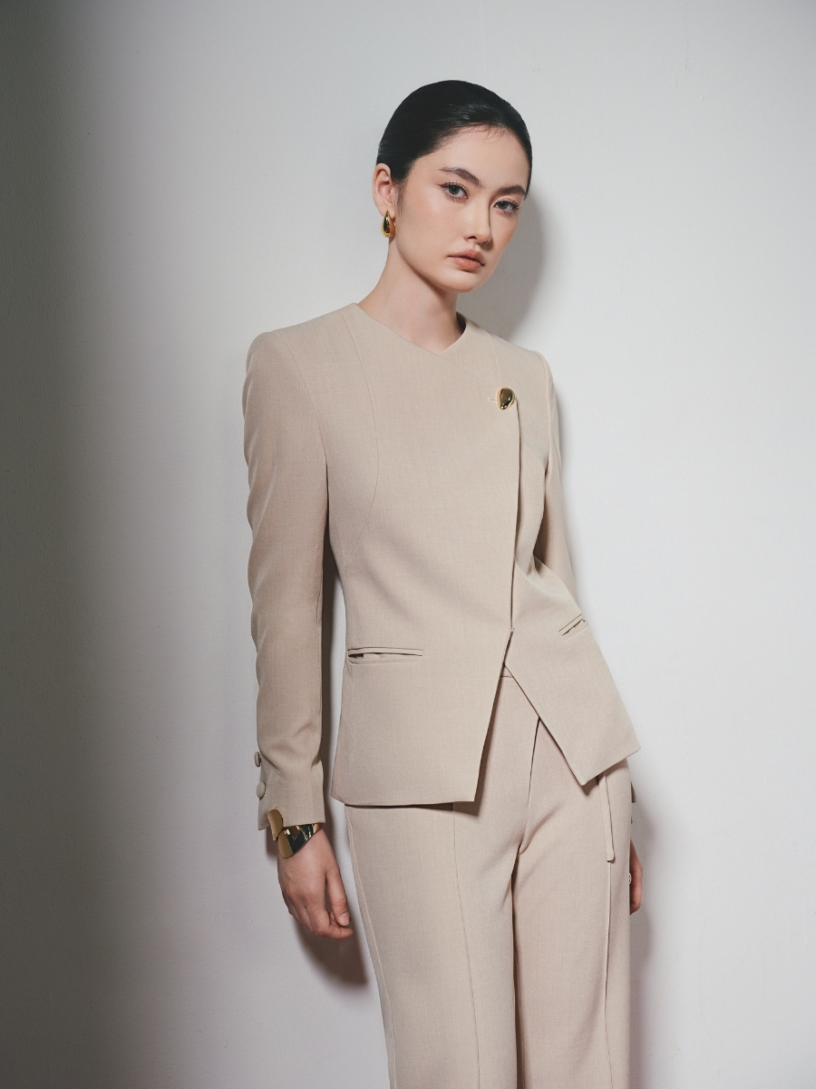 LOUISA BLAZER  Set suit tone be mang phom dáng tinh gọn, khắc họa vẻ ngoài thanh lịch và hiện đại theo cách nhẹ nhàng nhưng đầy cuốn hút. Tổng thể hướng đến sự tối giản, với các chi tiết cắt may...