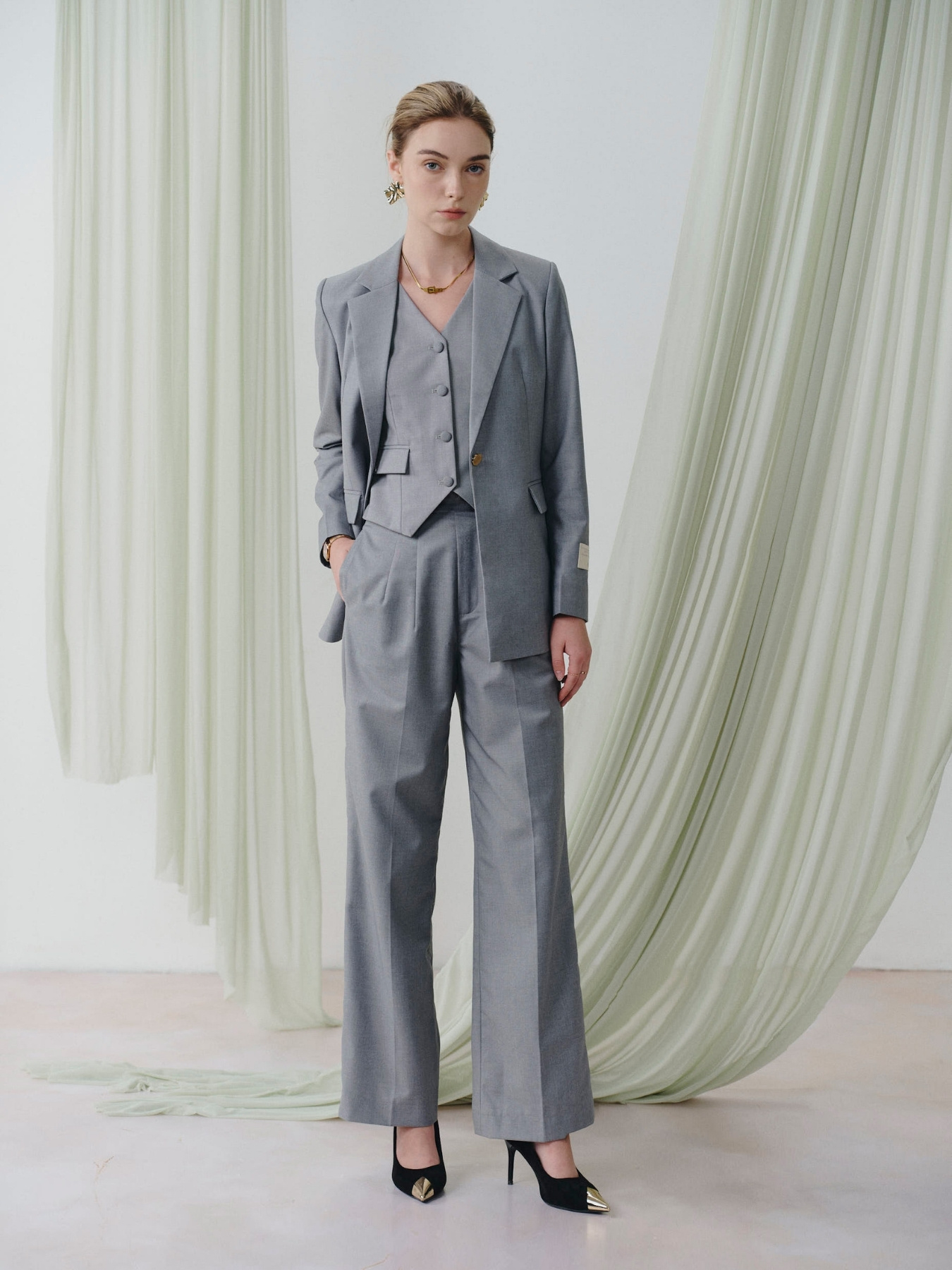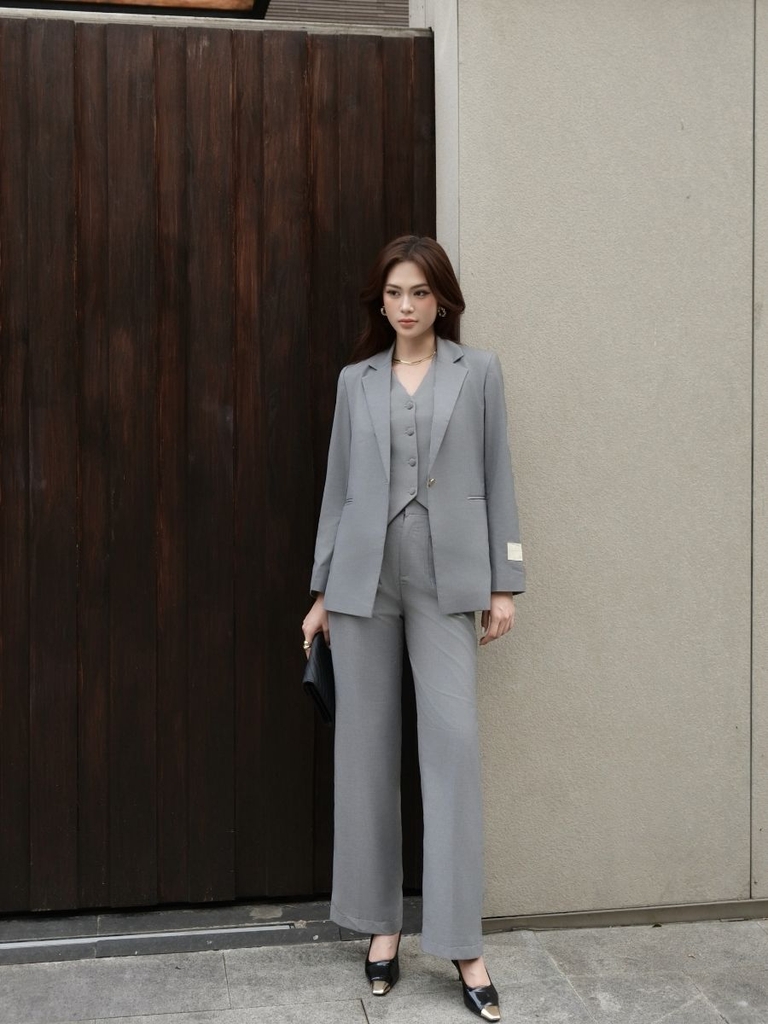 Sở hữu vẻ ngoài “effortless elegance” thanh lịch không cần cố với Rebecca Blazer/ Trousers. Một bộ vest gồm áo và cả quần màu ghi xám vô cùng cổ điển và thanh lịch. Màu xám trung tính, kiểu dáng cổ điển, đây hứa hẹn là một items không thể thiếu trong tủ đồ của bạn.