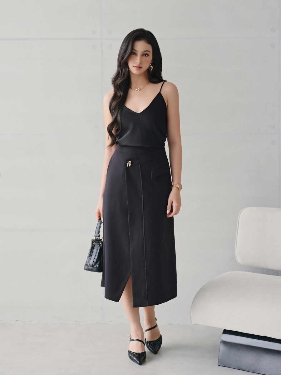 Giraly Skirt được thiết kế với phom dáng gọn gàng, đường xẻ tinh tế giúp tạo chuyển động nhẹ và mang lại sự thoải mái khi di chuyển. Chi tiết xẻ tà giúp tổng thể giữ được vẻ thanh lịch quyến rũ, đồng thời tôn dáng một cách kín đáo, phù hợp cho môi trường công sở.