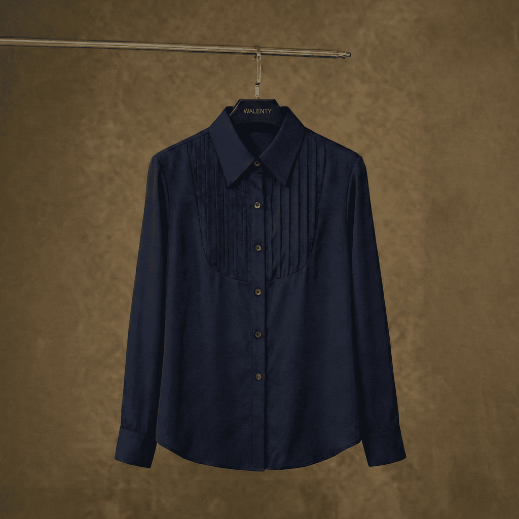 Áo sơ mi xếp ly ngực Lace