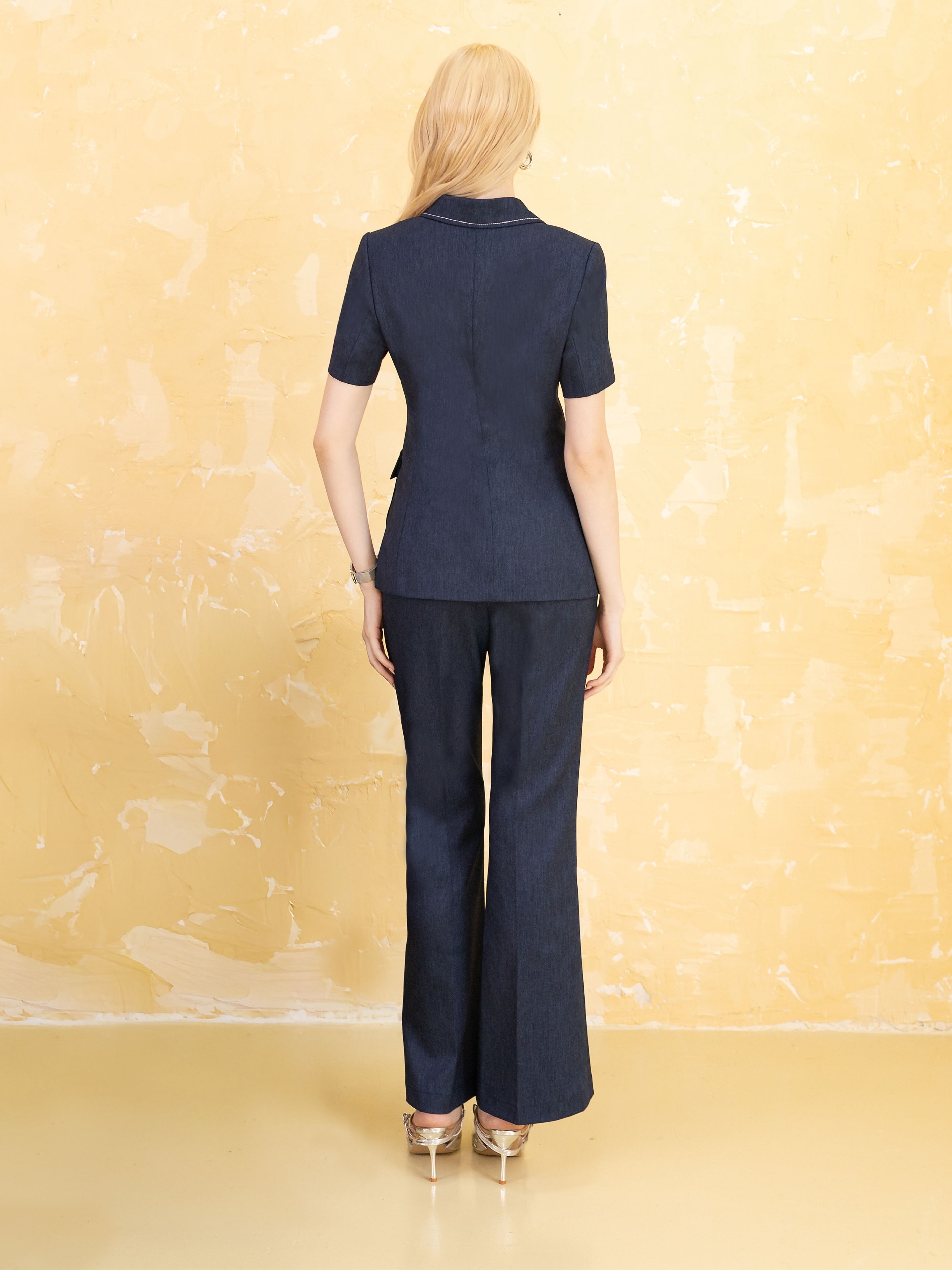 Blazer giả jean với phong cách mới lần đầu xuất hiện tại Walenty. Áo đem lại cảm giác retro thanh lịch, tay ngắn thoải mái tươi trẻ, ve cổ áo nhọn, nút kim loại bạc nổi bật tạo điểm nhấn tổng thể cho áo. Sử dụng 2 túi thật tiện lợi. Phối cùng quần đi kèm hoặc dễ dàng phối cùng nhiều phong cách khác nhau. Dành cho những ngày công sở và những buổi đi chơi nhẹ nhàng.