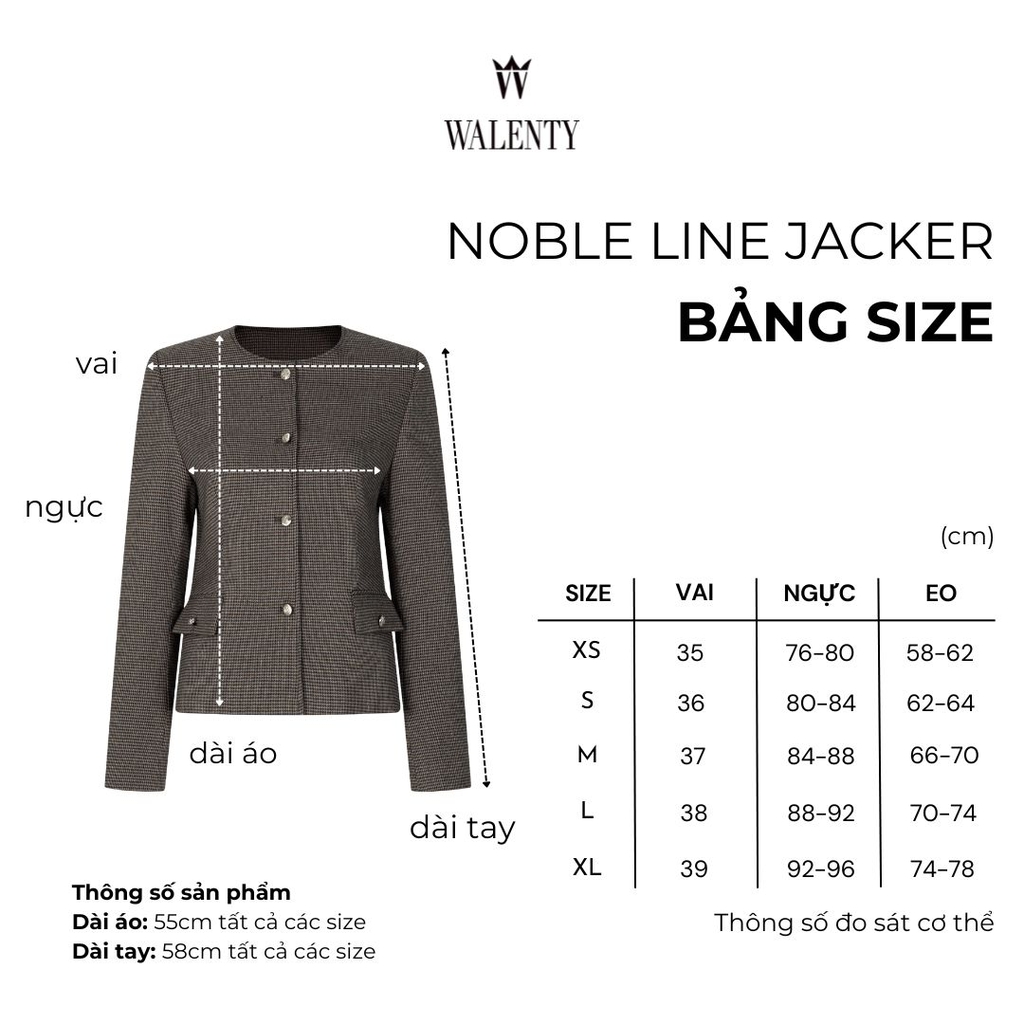 Chất vải caro nhỏ cao cấp với gam nâu trung tính mang lại chiều sâu thị giác tinh tế, dễ phối cùng sơ mi trắng, quần âu sáng màu hay váy liền tối giản. Một thiết kế dành cho người phụ nữ trưởng thành – không cần phô trương, nhưng luôn hiện diện với phong thái vững vàng và có gu.