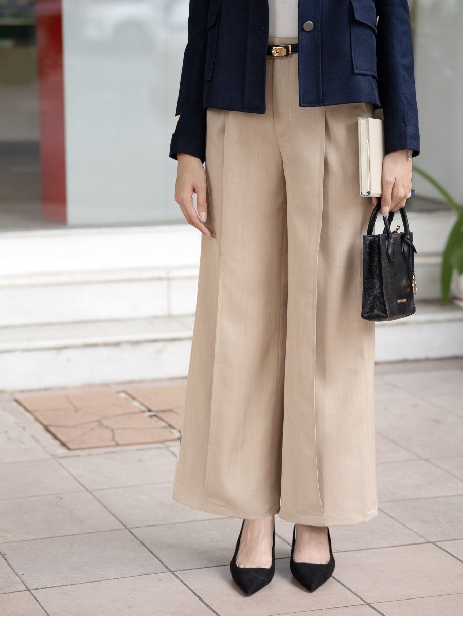 Rine trousers mang tinh thần công sở hiện đại với dáng quần suông nhẹ, giúp tạo hiệu ứng đôi chân thon dài và cân đối. Thiết kế tối giản tập trung vào đường cắt tinh tế, phù hợp với nhiều vóc dáng và dễ dàng ứng dụng trong mọi hoàn cảnh — từ nơi làm việc đến những buổi gặp gỡ cuối tuần.