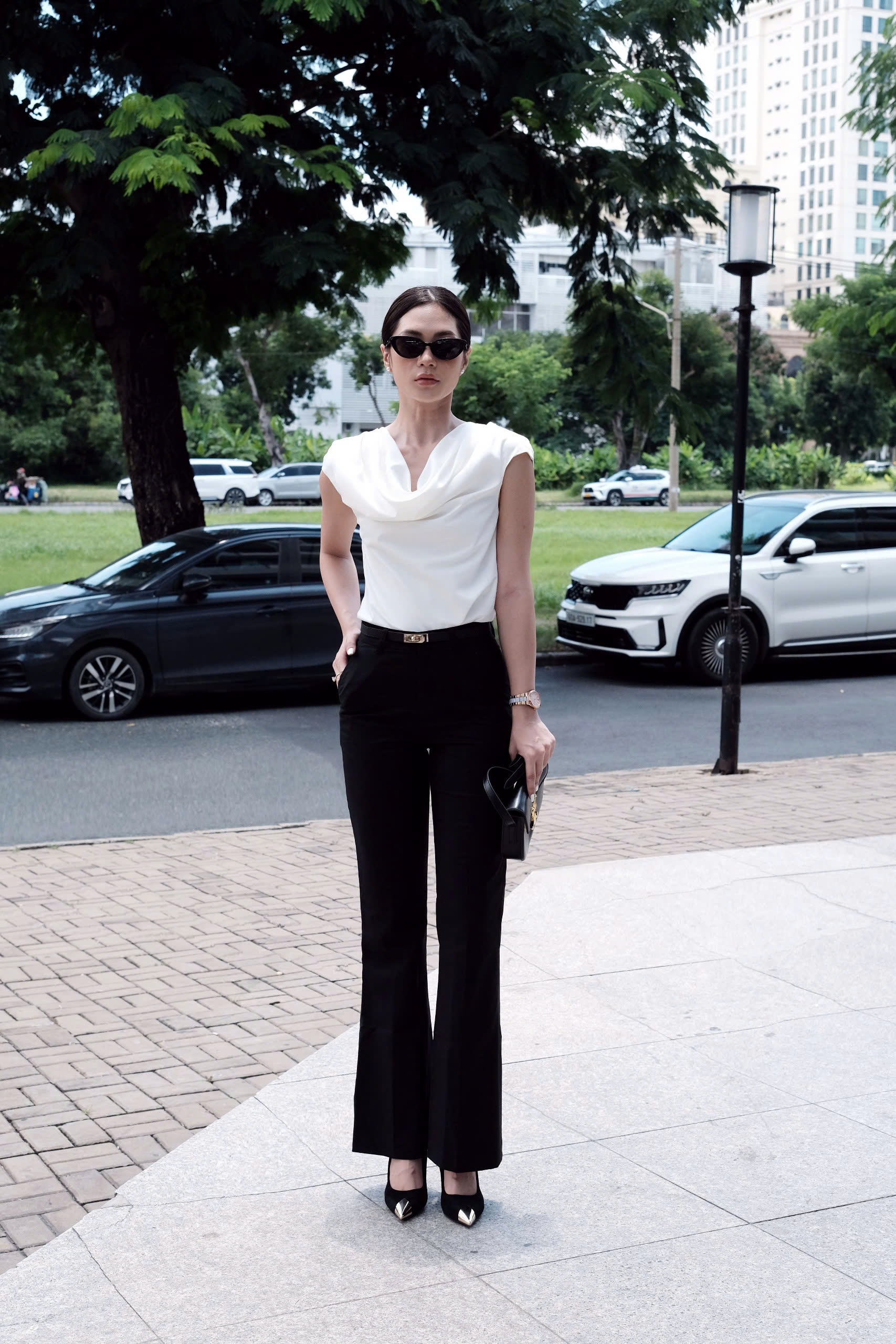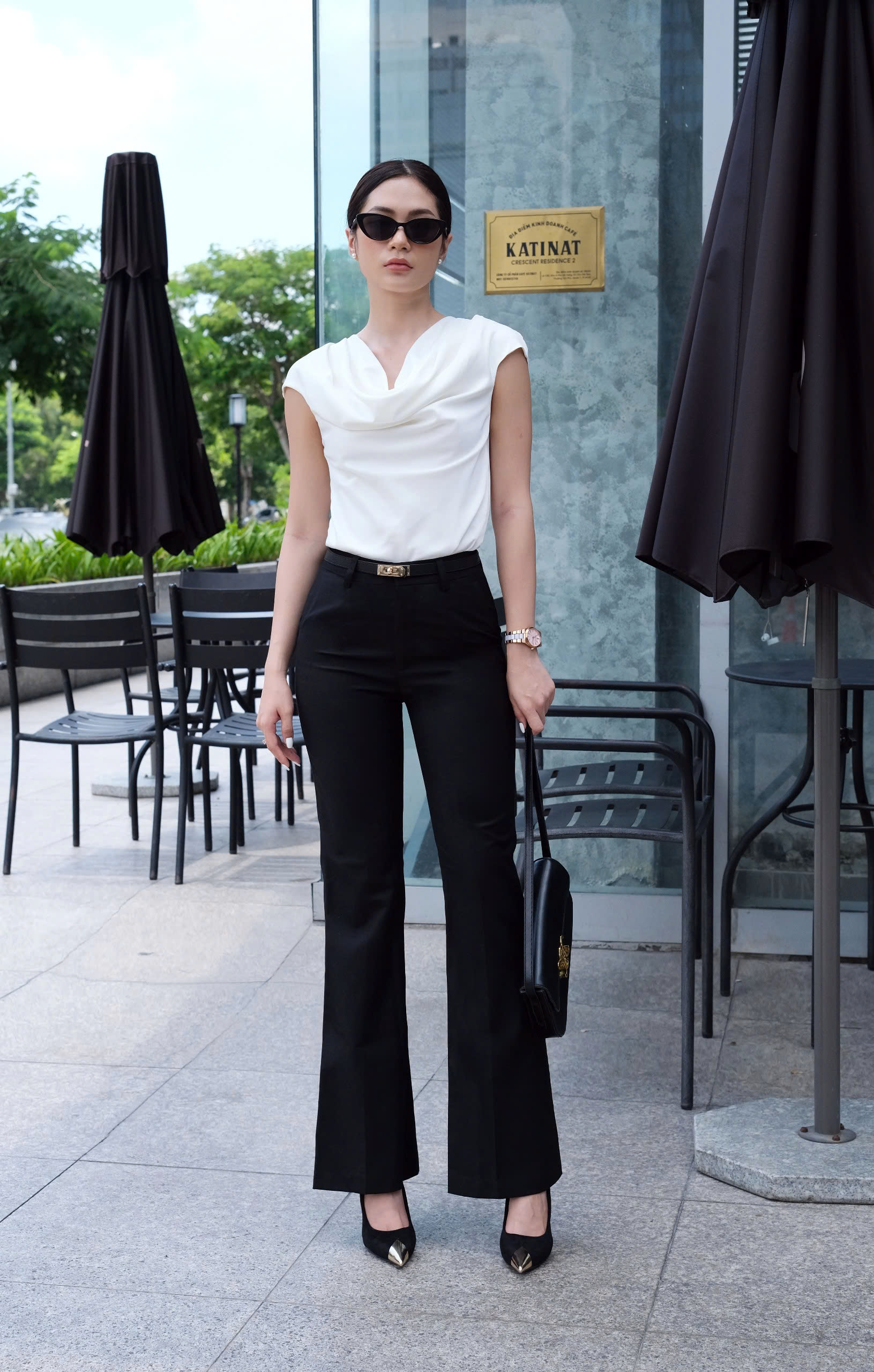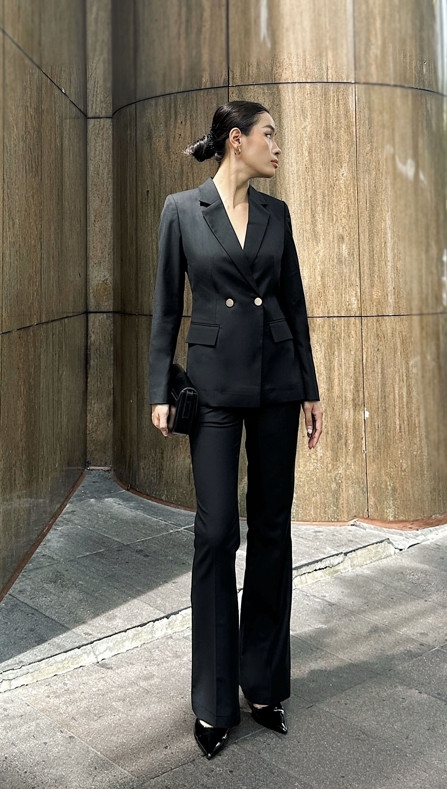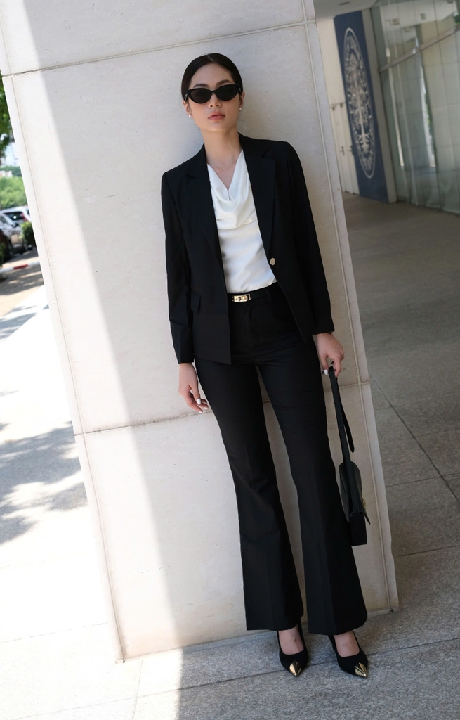 Một thiết kế mang vẻ đẹp thanh thoát, hiện đại và cực kỳ tôn dáng. Dáng ống loe giúp tạo hiệu ứng đôi chân dài và thon gọn, phù hợp cho nàng yêu phong cách công sở chỉn chu nhưng vẫn muốn giữ sự mềm mại trong từng chuyển động.