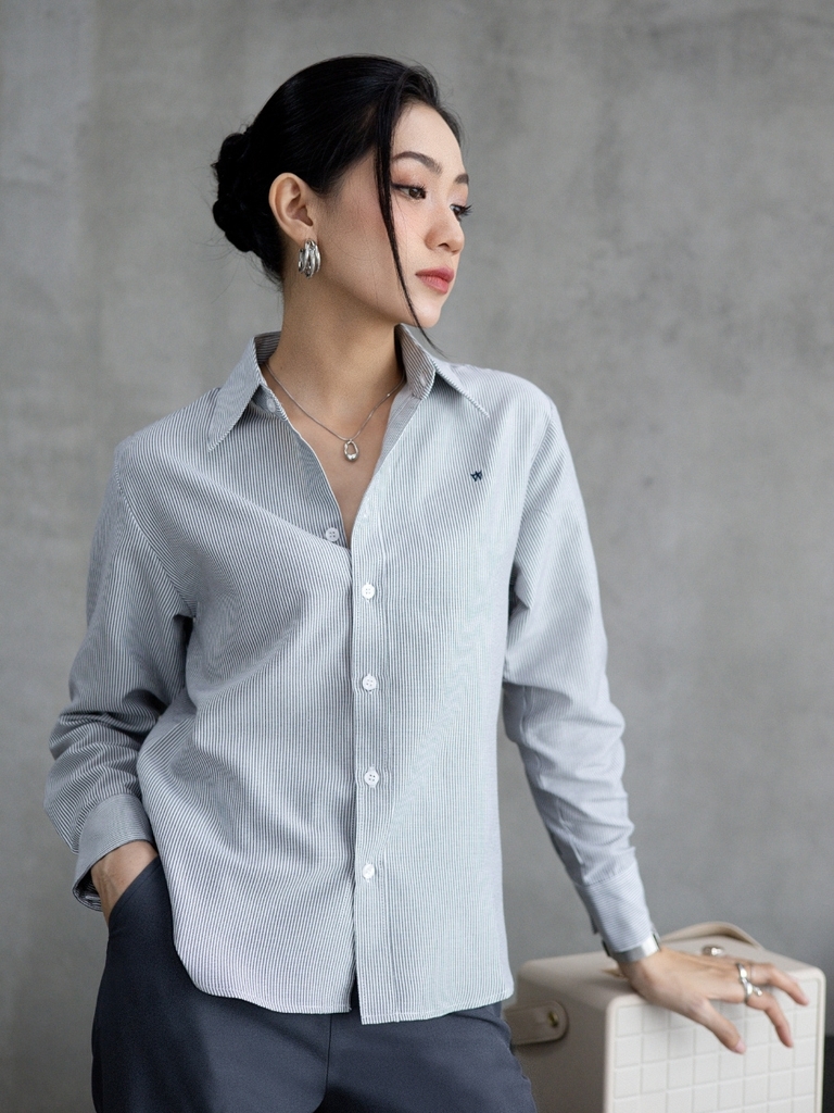 Vải Oxford dệt sọc với handfeel hơi gai tạo cảm giác chân thật, gần gũi, kết hợp cùng ba gam màu đen, hồng và xanh dương, giúp bạn dễ dàng biến hóa giữa nhiều phong cách từ trẻ trung năng động đến thanh lịch tối giản.