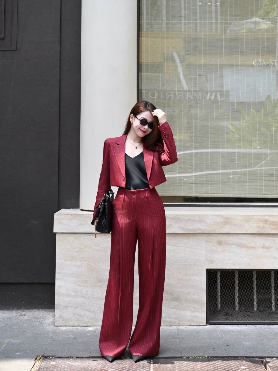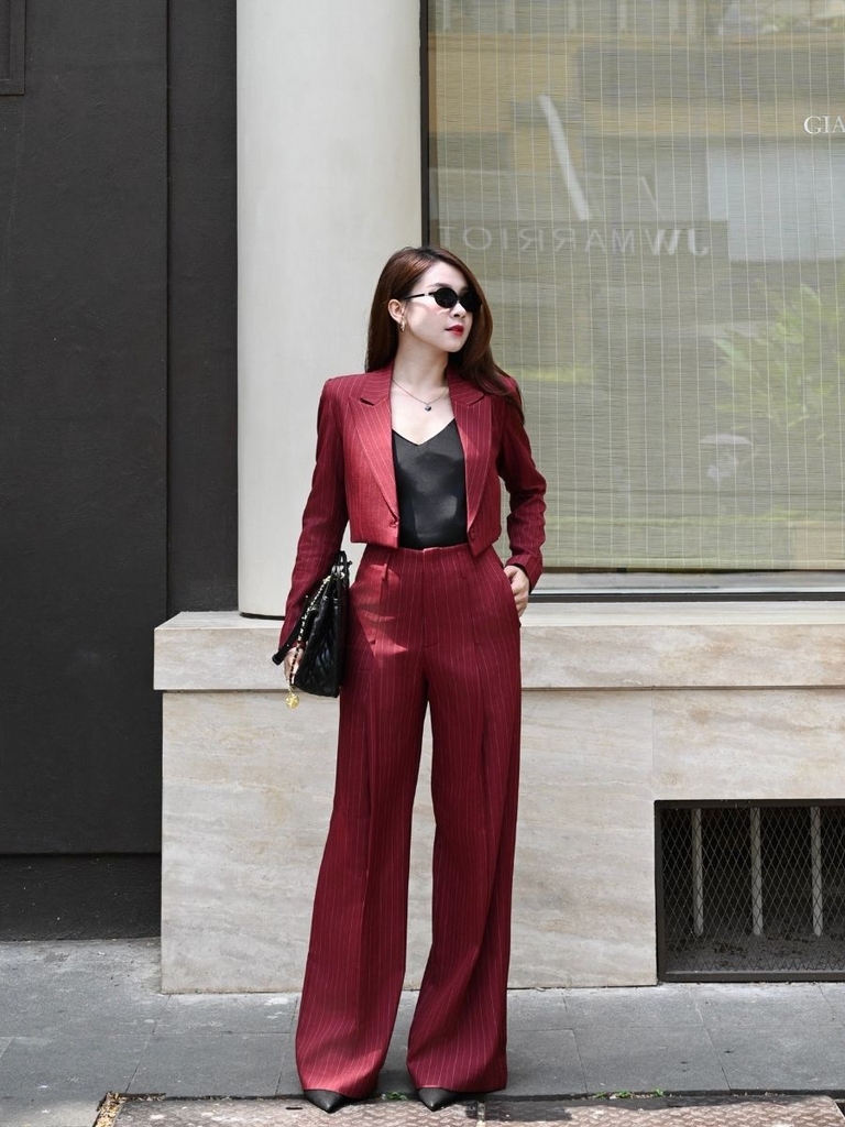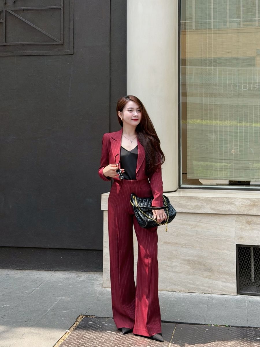 Quần Veline được thiết kế với dáng ống đứng, giúp tạo tỷ lệ gọn gàng và kéo dài đôi chân khi mặc. Phom quần đứng dáng, rơi thẳng từ hông xuống gấu, mang lại cảm giác sắc nét nhưng vẫn dễ vận động, phù hợp cho cả mặc thường ngày lẫn những dịp cần diện mạo chỉn chu.